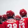 I halvtidsvilan fyller vi på med energi och pratar igenom planen inför den andra halvleken.
