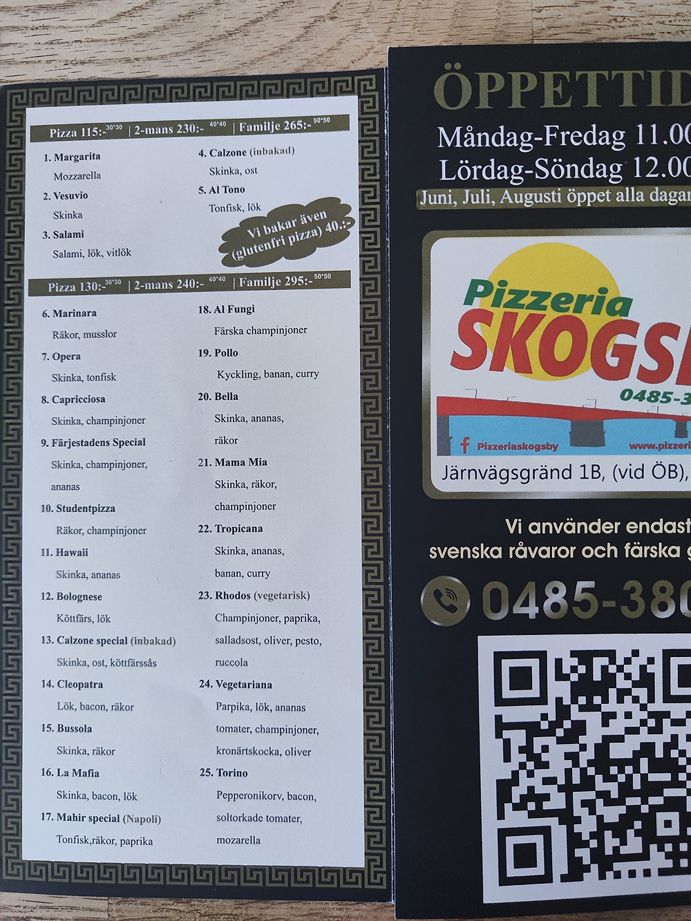 För att kunna förbereda pizza-beställningen i tid, skriv i kommentaren vilken pizza som önskas, se bild. Vi skulle få lite rabatt på Skogsby pizzeria. Swish till Emma då vi vet kostnaden, 070-5756621.