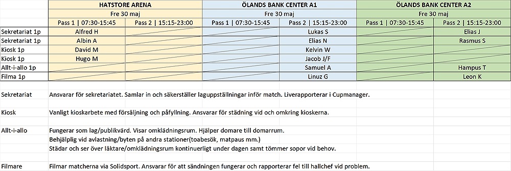 Observera att tiderna för arbetspassen är preliminära. Vi återkommer med eventuella justeringar när spelscheman är klara.