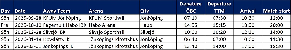 Long away games with Bus 2025/26