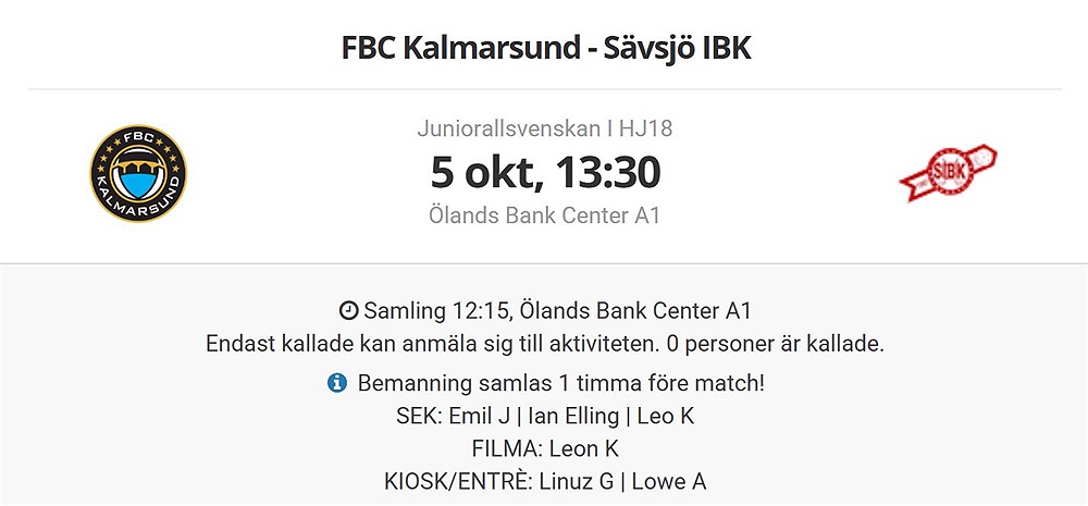 Bemanning vid HJAS hemmamatcher säsongen 25/26
