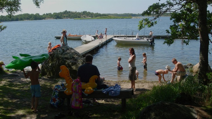 - Badplatsen ligger alldeles nedanför barackerna och stugorna (istället för flera hundra meter på Stenbräcka).