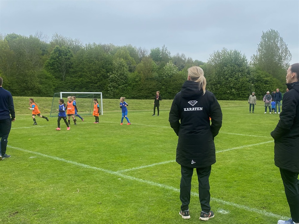 Med två blåa lag fick det bli västar, på sidan hejade tjejerna fram ”apelsinerna”