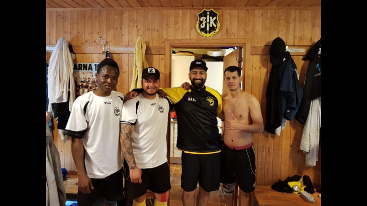 Målskyttarna George, Karar, Moji och en engagerad åskådare