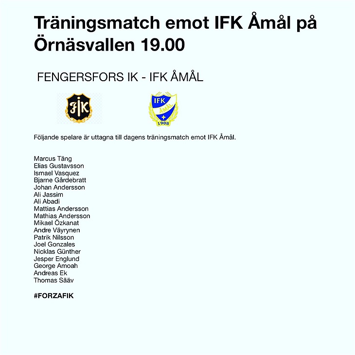 I dagens match var det en böljande hetta som var olidlig vid uppvärmningen, men den avtog något till matchstart. Matchen i sig var som sådan att IFK tilläts rulla boll och gjorde det förtjänstfullt med många yngre förmågor som det kommer bli spännande att följa i framtiden. FIK tycker jag dock stod upp bra och hittade stundtals kombinationer som mycket väl kunde straffat vid mer fokus vid sista passning. Det var vi som mestadels fick jaga boll men de kollektiva försvarsmetoderna var idag bra under ca 60-65 minuter innan tröttheten slog till. Målskytt för FIK idag var Thomas Sääv som på frispark satte kvitteringen i första halvlek. I andra kostade även samme man på sig att missa en straff och blev där och då 300:- fattigare. Detta efter en mycket fin crossboll ifrån Ali Jassim till hans namne Ali Abadi och den senare blev nedriven med straff som följd. Albin Handel i kamraternas kasse var med på noterna och avstyrde ett tämligen lamt försök. IFK vann matchen med 1-4. Idag vill jag lyfta fram vår centrallinje. Joel och Bjarne var nästintill felfria i försvarsspelet och Patrik och Matte på det centrala mittfältet gör en aldrig besviken. Nämnas bör också George Amoah göras, då han gör en riktigt bra insats. Men all heder åt det unga IFK laget som visar att det finns klass i de yngre produkterna också. Vi tackar för förtroendet och hoppas att få återkomma nästa år igen. Vi gnuggar vidare inför nästa helgs omstart. Träningar väntar till veckan.