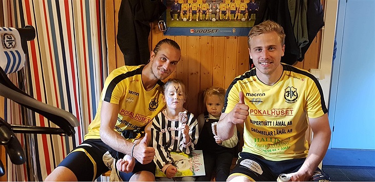 Jesper Englund gjorde 1 mål, här syns han tillsammans med den andre målskytten i matchen Simon Schullström och med sina adepter Bella och Filippa.