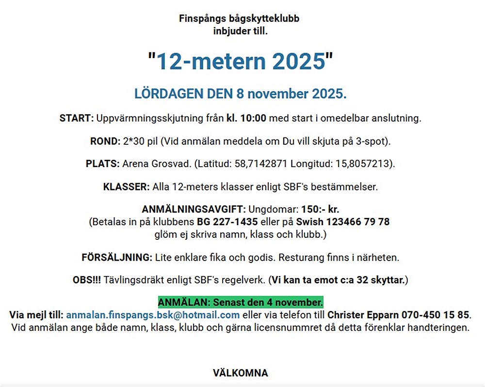 Länk för mejl för anmälan:anmalan.finspangs.bsk@hotmail.com.