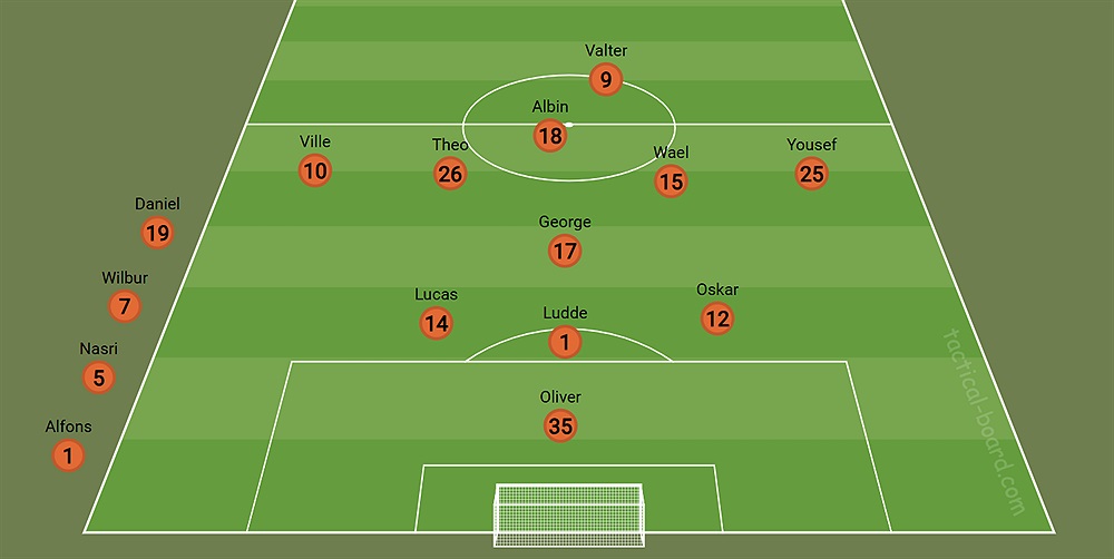| 14 | 3 | 2 | 9 | 18 | 35 | -17 | 11 | |