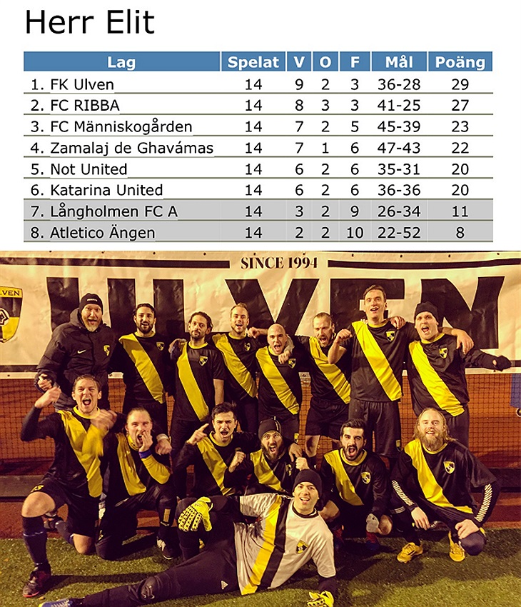 När fotbollsgeneralen lade spelprogrammet för 11-fotboll Elit bestämde han att sista omgången skulle innehålla matchen Ulven-Ribba. Han hade nämligen på känn att de två lagen precis som ifjol skulle slåss om seriesegern. Å precis så blev det. Människogården, Katarina United och Not United var med och konkurrerade ett tag men i slutändan stod det mellan dessa bägge rivaler. Ulven satt i förarsätet i serien men förluster mot både Zamalaj och Not United i slutet ställde till det så att man behövde vinna seriefinalen, för Ribba räckte det med kryss.