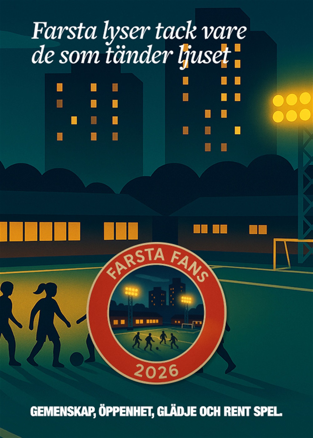 2026 är det tredje året vi gör detta, och i år lyfter vi fram ledare, ungdomar och eldsjälar som skapar värme, glädje och framtidstro när kvällen kommer – oavsett om det är vardag, helg eller skollov. Här samlas ungdomar för att spela, skratta och känna gemenskap – på kvällar, helger och under skolloven. När ljusen tänds på Farsta IP och i Farstahallarna fortsätter Farsta att leva, och unga får en trygg plats att vara på.