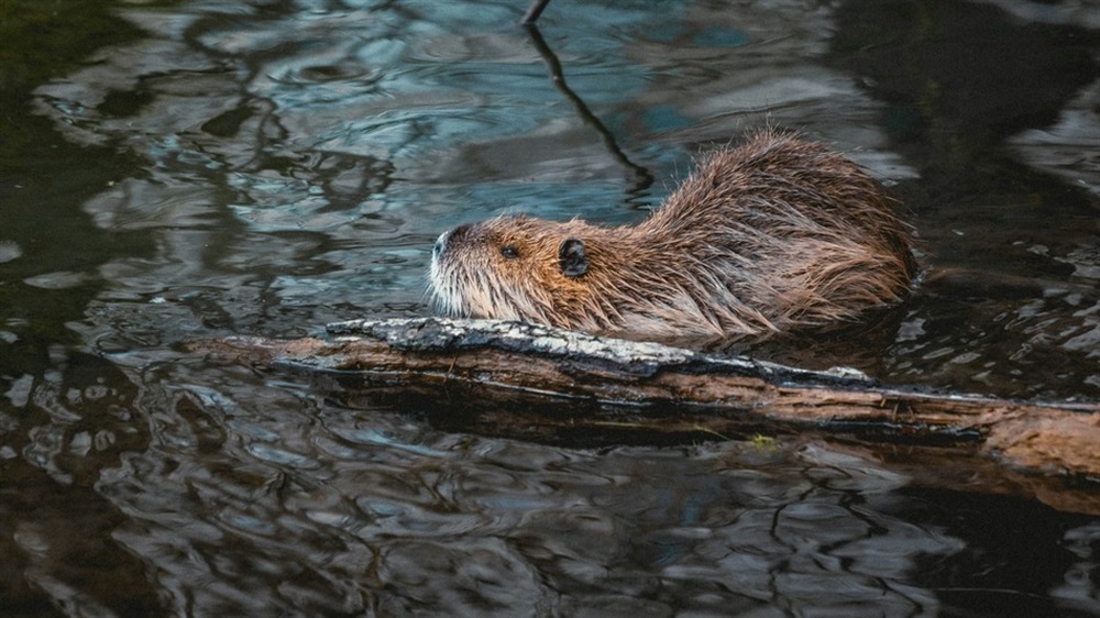 Bäver som simmar i ett vattendrag. Bäversafari är en av många aktiviteter som erbjuds under temavecka natur, kulturarv och friluftsliv..