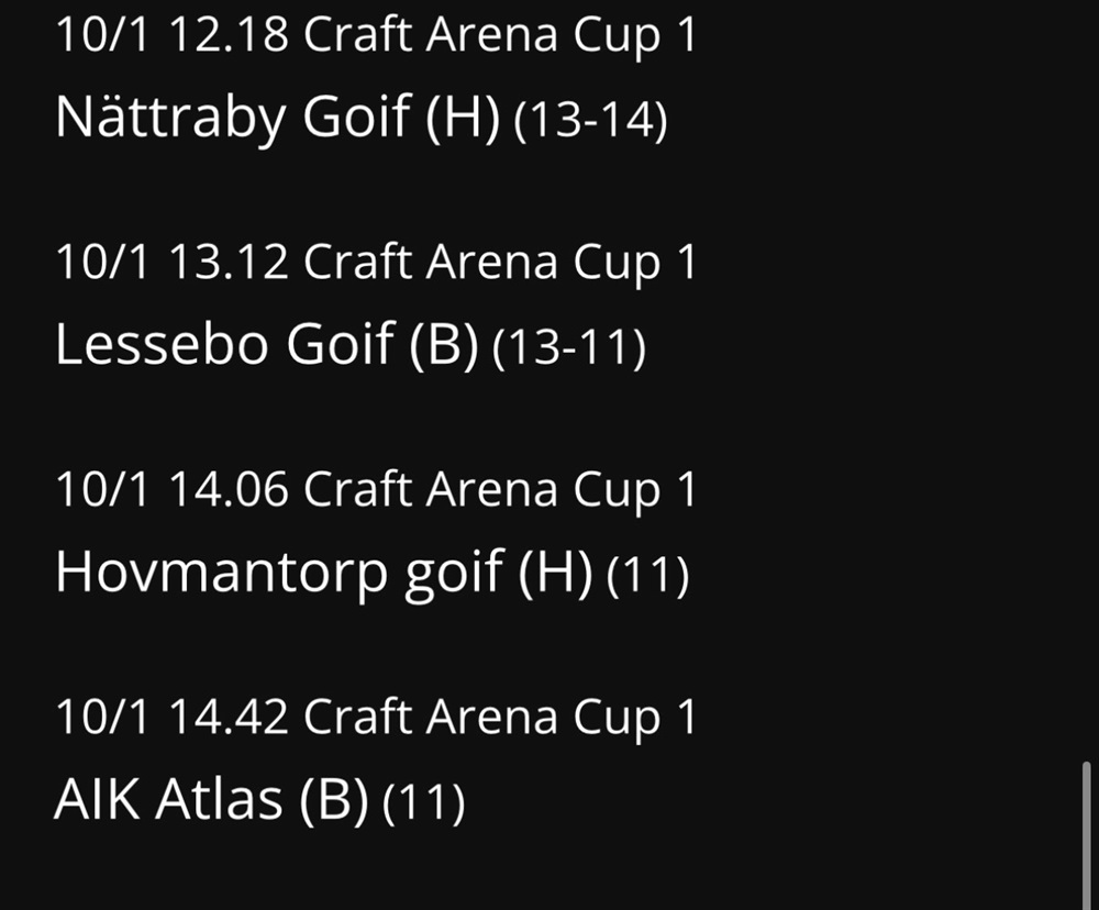 På bilden ser ni spelschemat för PF19i Craft Arena Cup