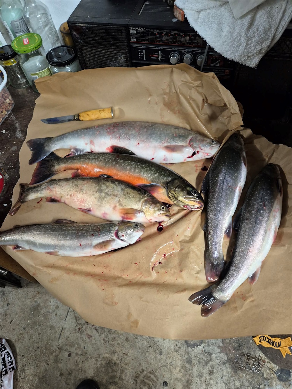 Grössjön senaste isläpp 2025-10-13 1000kg röding+ (7kg smolt). 2025-10-30 150kg öring