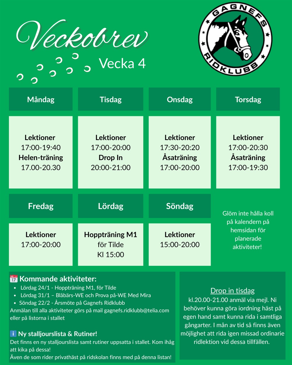 Dessa finns uppsatta i stallet så kom ihåg att titta på dessa och skriv in i din kalender när det är din tur.