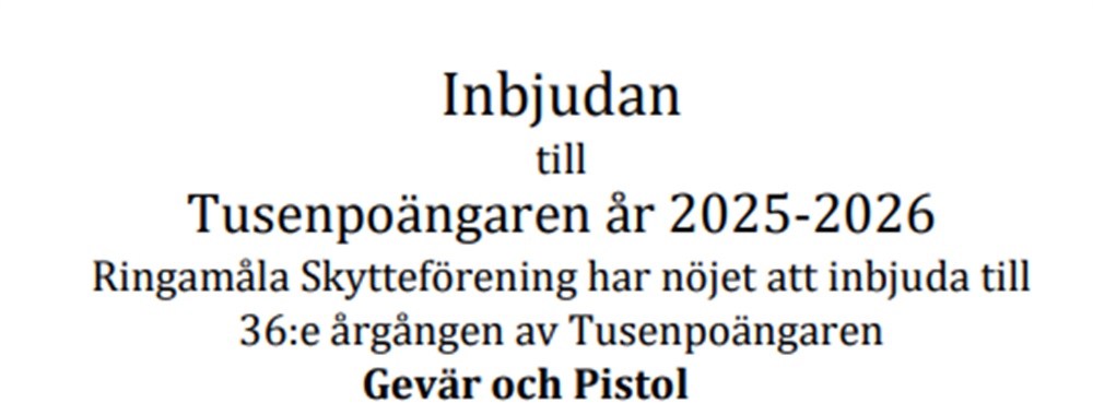 Förutsättningar finns anslagna på vår anslagstavla och elektroniskt i tävlingskalendern (https://www.skytteta.se/event-list, sök Tusenpoängaren).