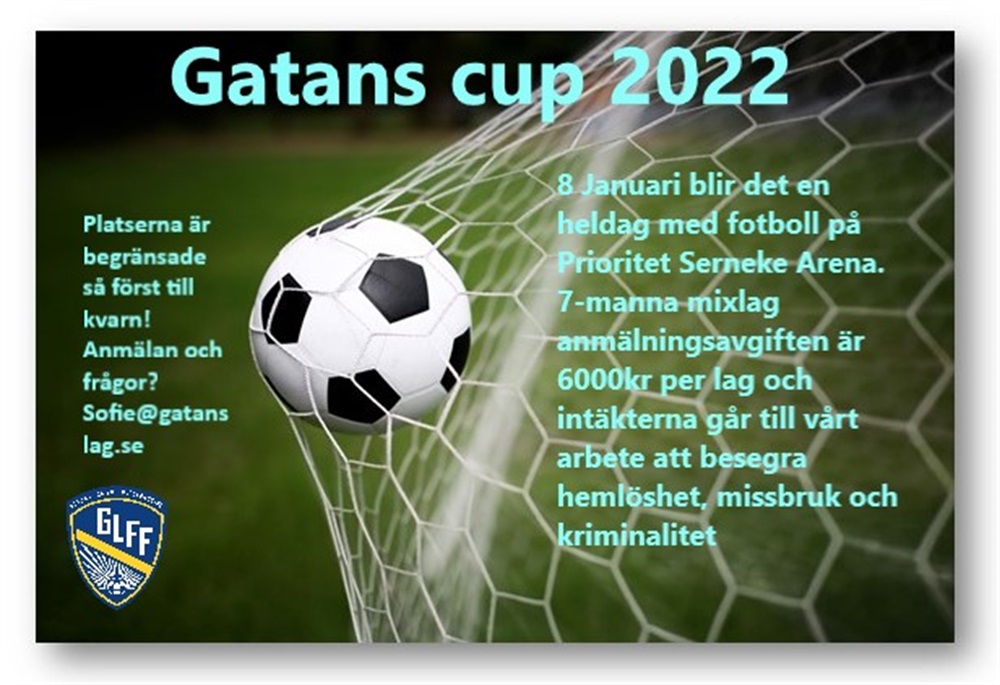 Vi har nu glädjen att äntligen kunna bjuda in till årets Gatans Cup som går av stapeln den 8 januari 2022 i Prioritet Serneke Arena, Kviberg, Göteborg.