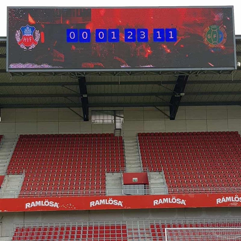 På plats vid arenan blev vi varmt mottagna av Helsingborgs ledare och på den stora bildskärmen sågs vårt klubbemblem lysa!