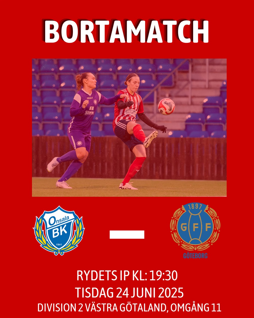Tisdag 24 juni möter GFF:s damer Onsala BK på bortaplan klockan 19:30. Det blir en spännande match mellan trean och tvåan i divsion 2.