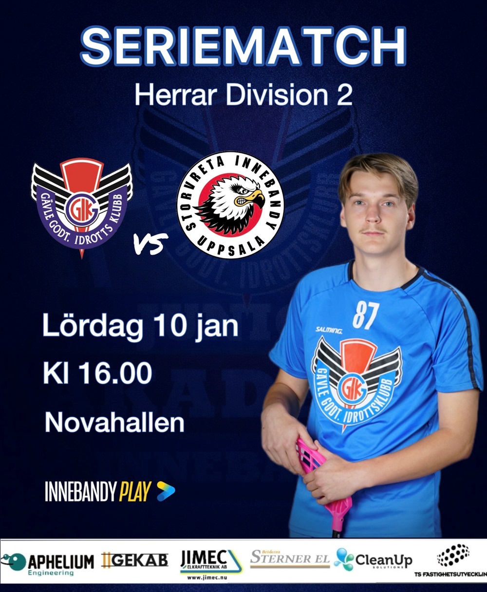 Nytt år och vi kör igång direkt med seriematch i Herrar Division 2 GUD mot Storvreta IBK på lördag 10/1 kl 16 hemma i Novahallen.