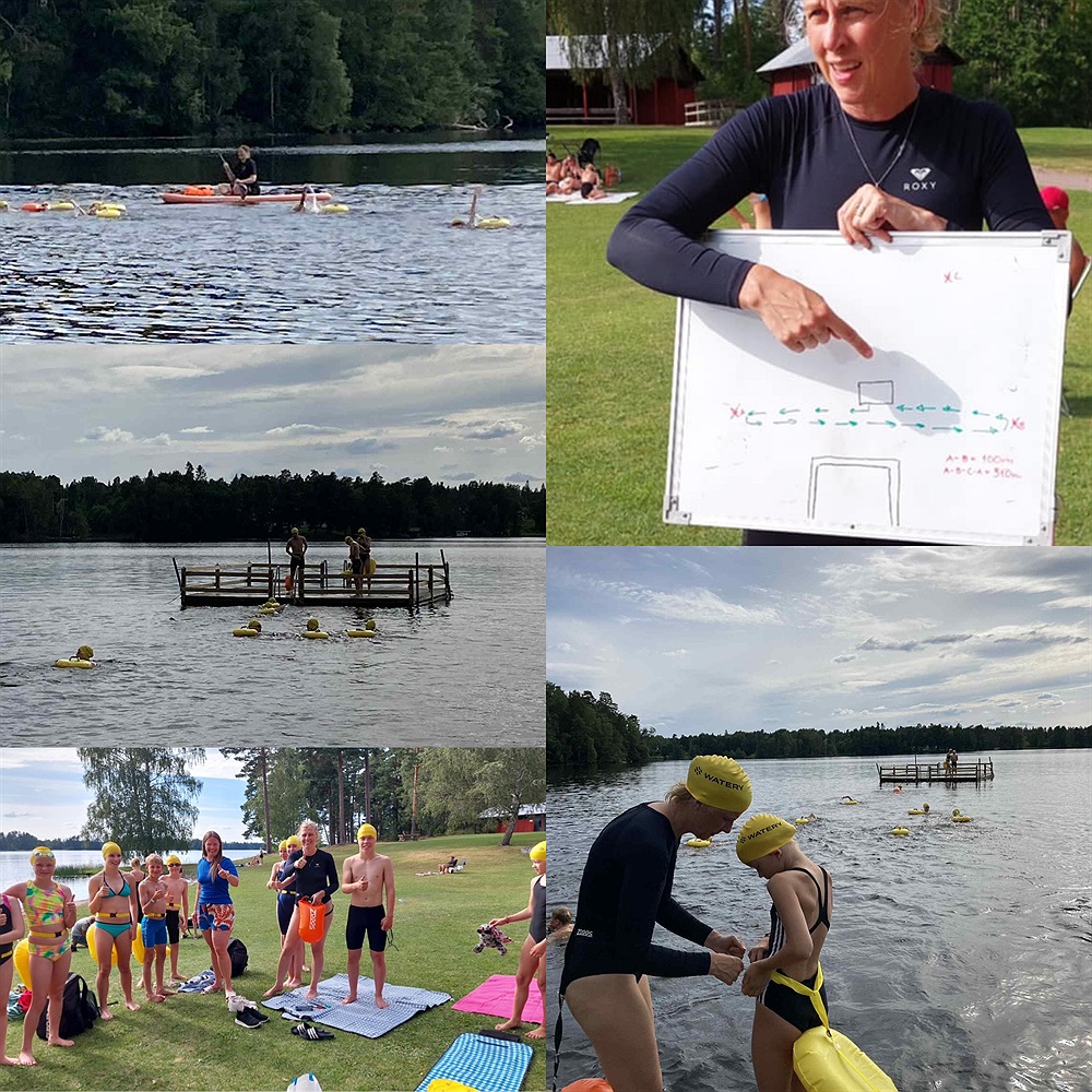 Vi testade klubbens nya utrustning för Öppetvatten. Dessutom genomförde vi Sallyprovet som består av att falla i vattnet och sedan simma 200m varav 50 m på rygg. Det var först lite ovant att ha simboj runt midjan, men alla simmarna klarade det galant! Och det var så varmt i vattnet att vi kunnat vara kvar i vattnet hela kvällen. Nu är det augusti och snart dax för läger!