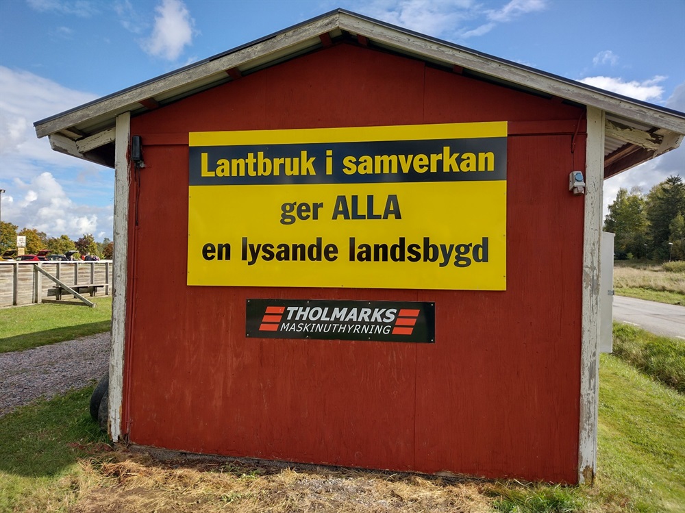 - Skyltgaveln på boden skrapades och rödfärgades. Det vita hanteras vid bättre väderlek.