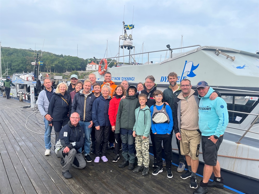 Glada GVSDK:are med Dyk-Leifs Anders framför dykbåt.