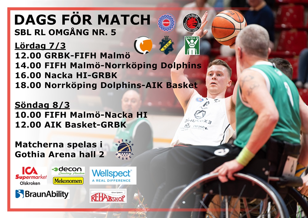 Vi närmar oss mars månad och det drar ihop sig till slutspel i ligan för rullstolsbasket. Den 7:e och 8:e mars spelas de sista matcherna i den 5:e och sista grundserieomgången. Det kommer att bli 6 stycken jämna och hårda matcher....
