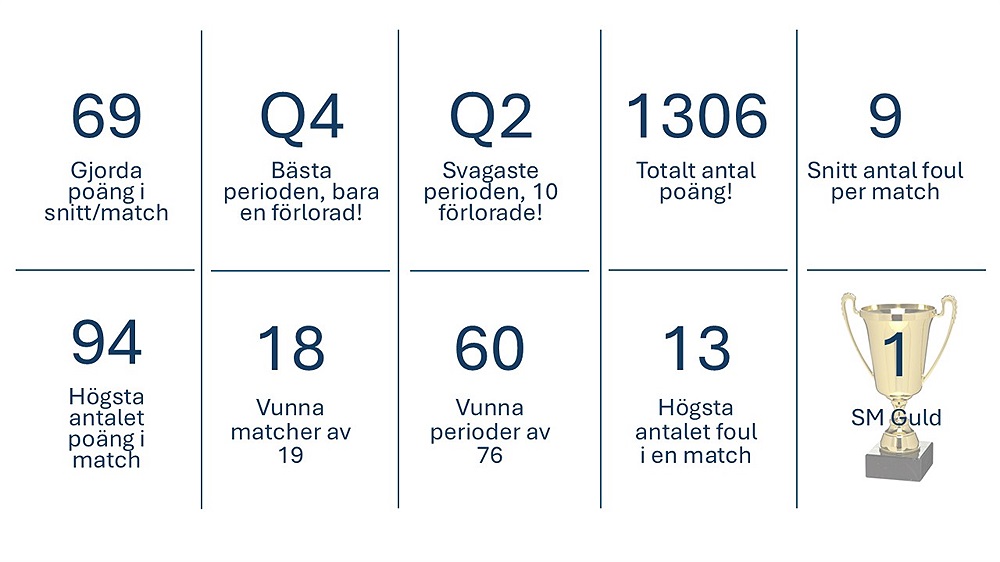 Visst undrar men hur säsongen 24/25 gick! Hur många poäng gjordes, hur många foul blev det, i vilken period var man starkast... Här ovan har ni svaret på det och en del annat!
