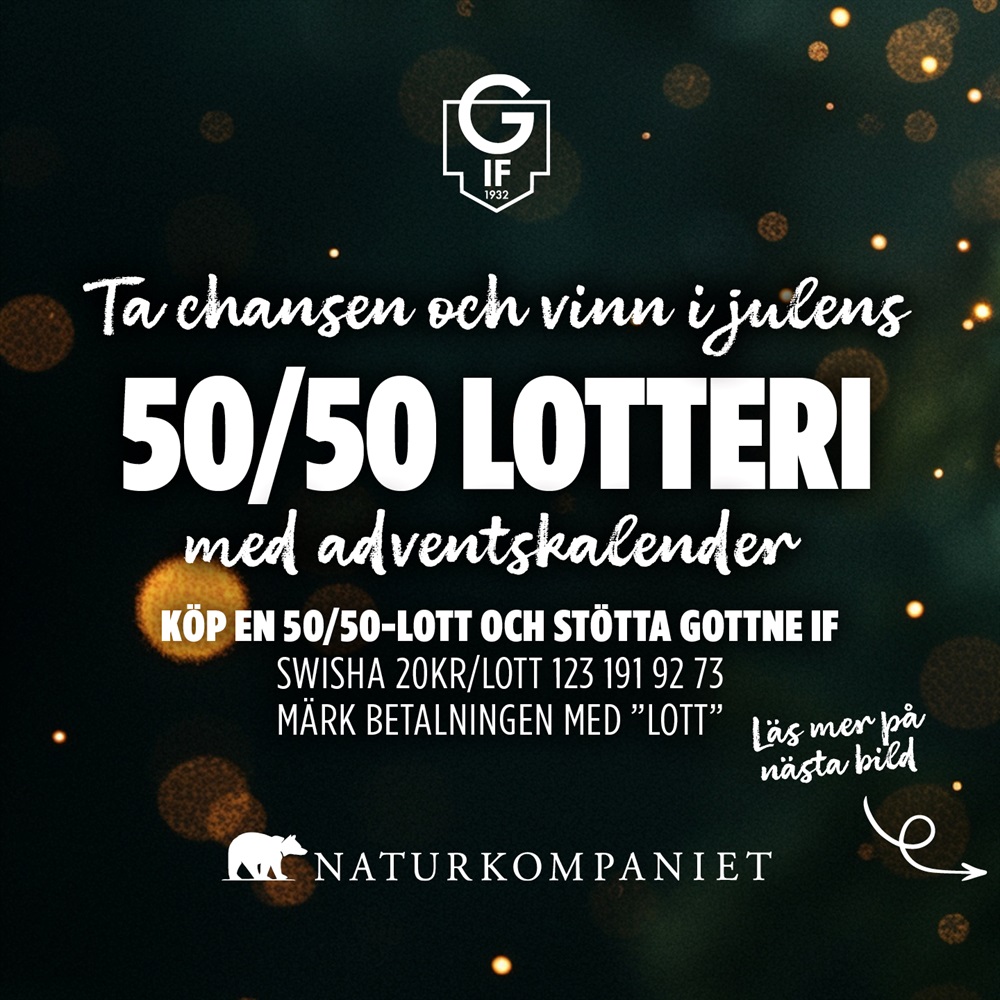 Nu drar vi igång ett 50/50-lotteri där du kan vinna en fin slant samtidigt som du stöttar klubben. ️ Som en bonus kommer vi varje söndag fram till jul även dra en vinnare som vinner en Kånken-ryggsäck från Naturkompaniet. Lotterna kostar 20kr/st och du köper dina lotter genom att swisha summan för en eller fler lotter till 123 191 92 73 och märker betalningen med "Lott" Dragningen kommer ske söndag 21/12.