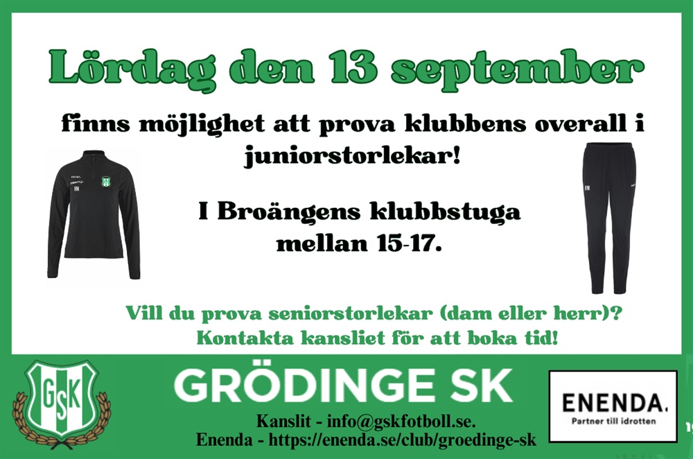 Möjlighet att prova klubbens overall i juniorstorlekar!