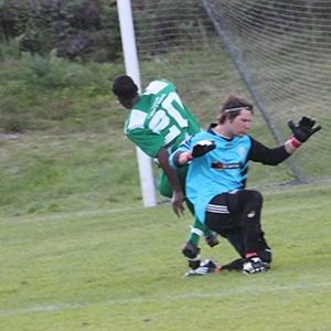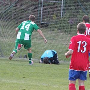 Första halvlek så spelade vi stundtals mycket bra fotboll och vi hade ett flertal frilägen som tyvärr deras målvakt räddade (mycket duktig målvakt som måste ha spelat i betydligt högre serier). Vårt försvarspel fungerade också bra med tanke på att vi återigen fick använda ett nytt mittbacks par på grund av skada på Johan Persson, så med tanke på det var det bra. Vi kom i underläge med 0-1 efter 20 minuter på ett skott utanför straffområdet där Kling var skymd och som gick in vid stolproten. 1-1 kommer efter 32 minuter som startade med ett inkast från Erik till Christian som lägger en perfekt passning till Mackan som inte gör något misstag utan sätter dit bollen med ett riktigt klassavslut. Halvtidsresultat 1-1.