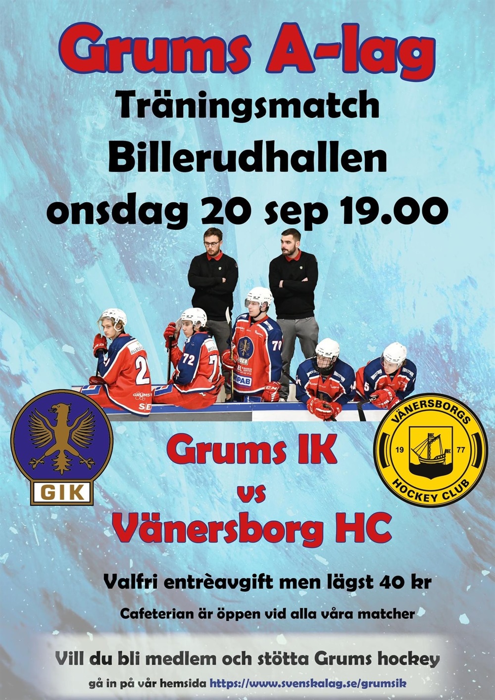 Vi tror på en bra träningsmatch i kväll då lagen drabbas samman för andra gången i höst. Vi har dessutom revansch att utkräva då Vänersborg vann sin match hemma i Brätte Ishall med 4-2.