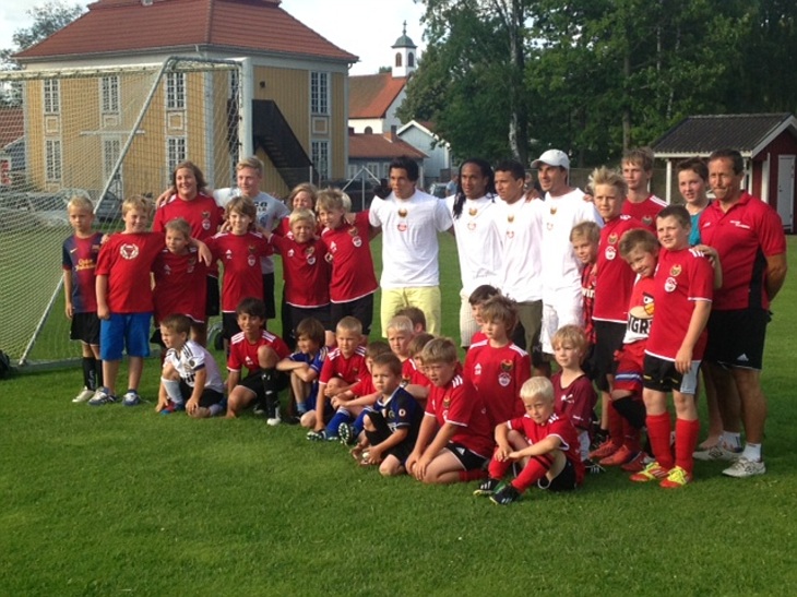 I tisdagskvällens solsken på Dackehed fick vi fint besök i form av fyra Kalmar FF spelare som gästade en ungdomssamling vi hade. De fyra som kom var Romario, Daniel Mendes, Jonathan McDonald och Ismael. Trots semestertider var uppslutning god med ca 40 barn totalt under kvällen sedan givetvis massa föräldrar och syskon också. Så det var en trevlig kväll.