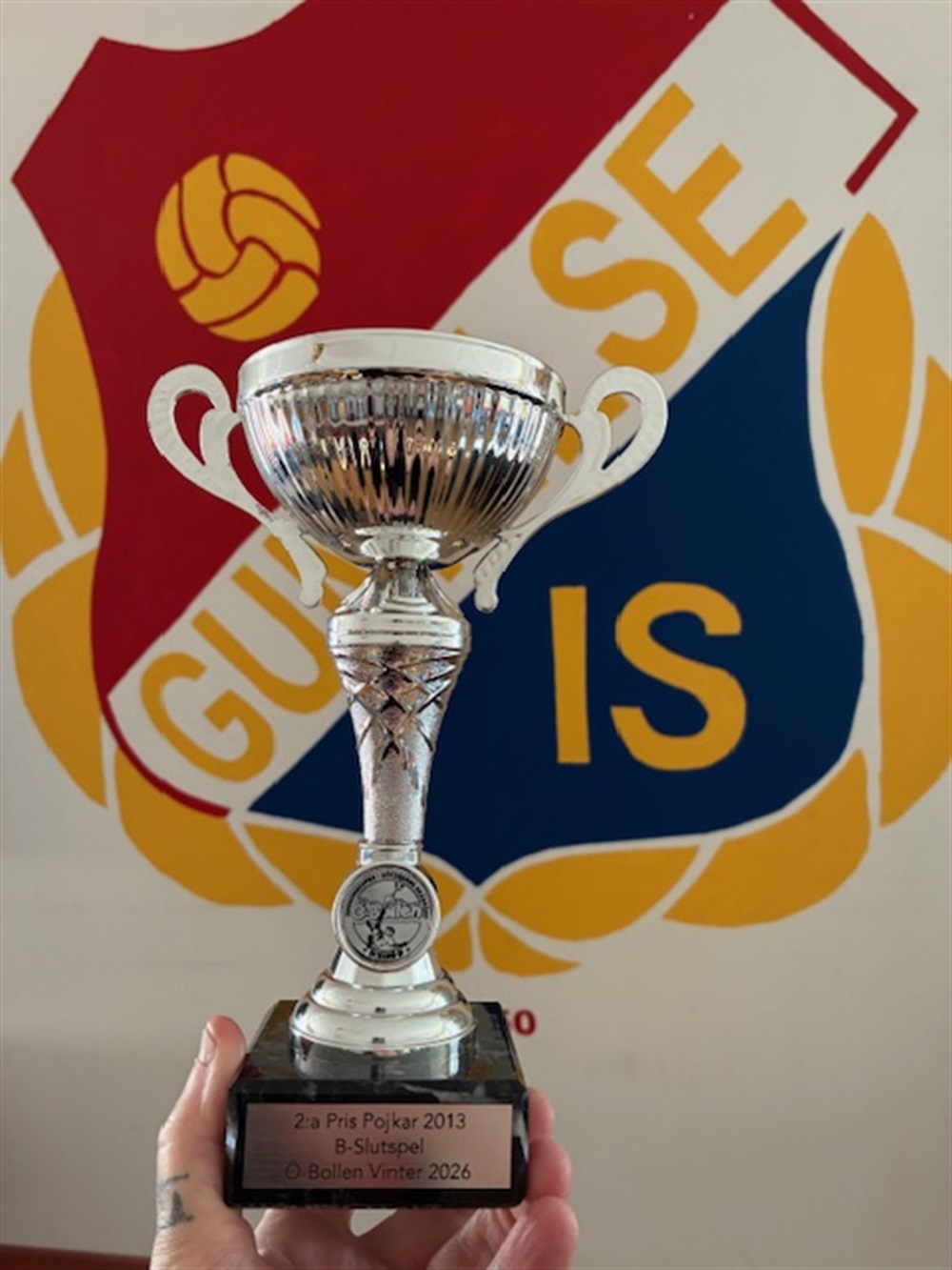 Finalbucklan från Ö-bollen vinter,bärgades hem till prisskåpet i Gunnilse IS klubbhus vid Hjällbovallen
