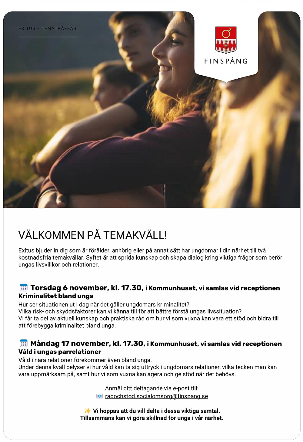 Temakvällar kring kriminalitet och våld i nära relationer.