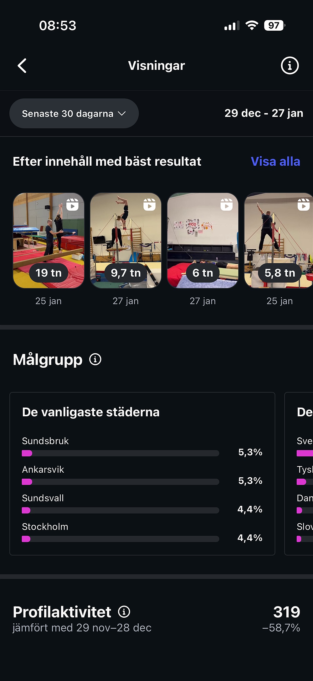 Skapa informativa och inspirerande inlägg som förklarar vad gymnasterna gör