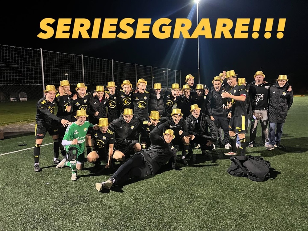 Efter sista och avgörande matchen mot TBoIS där Herrjunior vinner med 4-0 så kunde laget fira seriesegern med guldhattar, konfetti och bubbel! Stort grattis till alla spelare och ledare! Grymt jobbat!