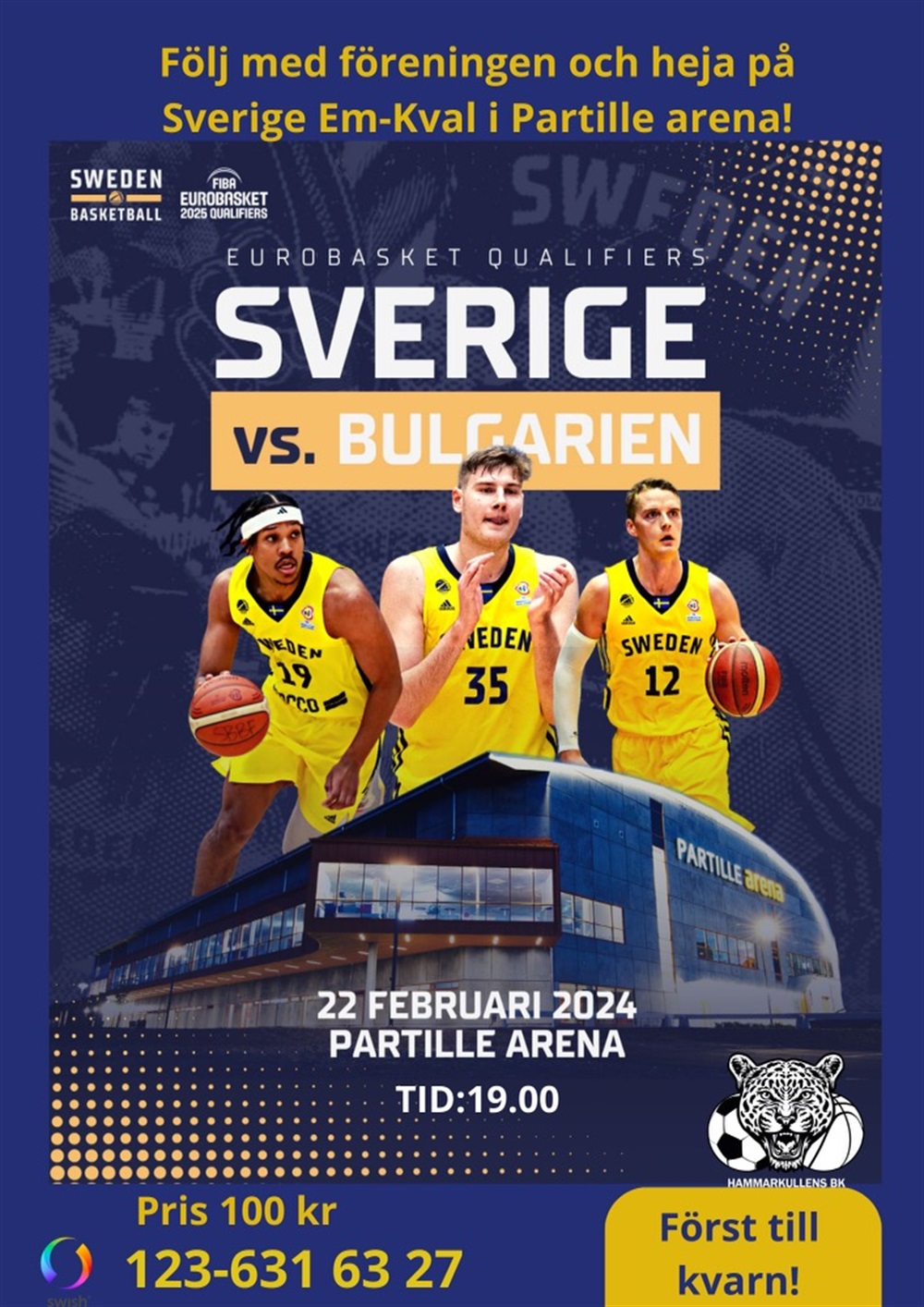 Föreningen samlas för att se Sverige möta Bulgarien i basket-EM-kvalet den 22 februari kl 19 i Partille Arena. Biljetter kostar endast 100:- och kan köpas via Swish till föreningen. Arenan, centralt belägen i Partille, Säkra din plats genom att köpa biljetter i förväg och delta i denna gemensamma aktivitet för föreningen. Datumet att notera är 22 februari, och matchen börjar klockan 19:00. Låt oss samlas för att stödja vårt lands basketlag och njuta av spänningen i Partille Arena. Vi ses där!