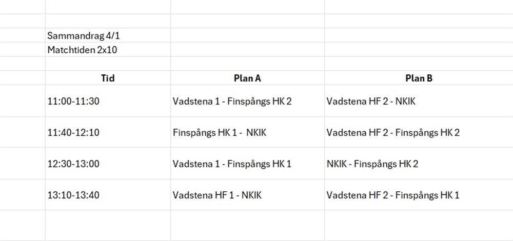 Båda lagen har samma samlingstid, 10:00 i Vadstena sporthall.