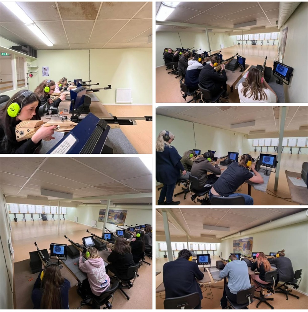 Trekungagynnasiet hade en del av sin idrottsdag hos oss idag. Många entusiastiska elever kom och provade på att skjuta luftgevär med full koncentration och många skratt.