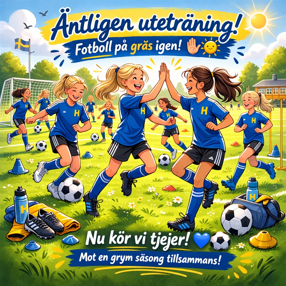 Nu på söndag kör vi vår första träningen utomhus – äntligen dags för lite frisk luft och fotboll på gräs igen! 🙌☀️