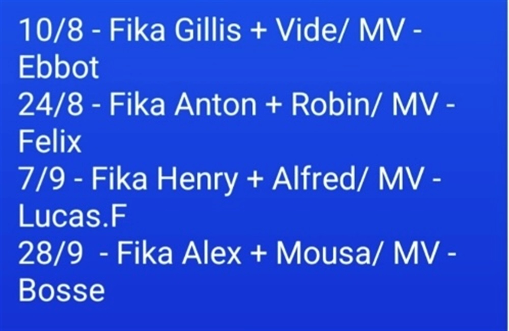 Schema fika och matchvärd höst 2025