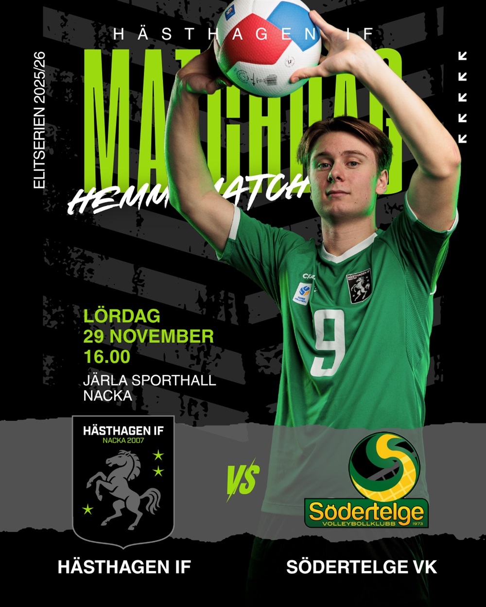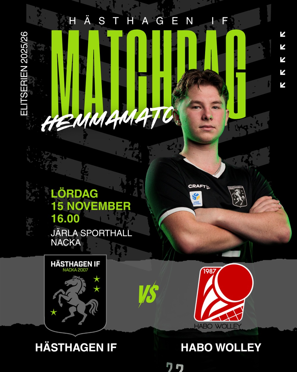 Kom på Elitseriematch i Järla Sporthall på lördag kl 16, publikinsläpp kl 15. Klubben bjuder på inträdet för Hästhagenspelsre och -ledare i klubbkläder.
