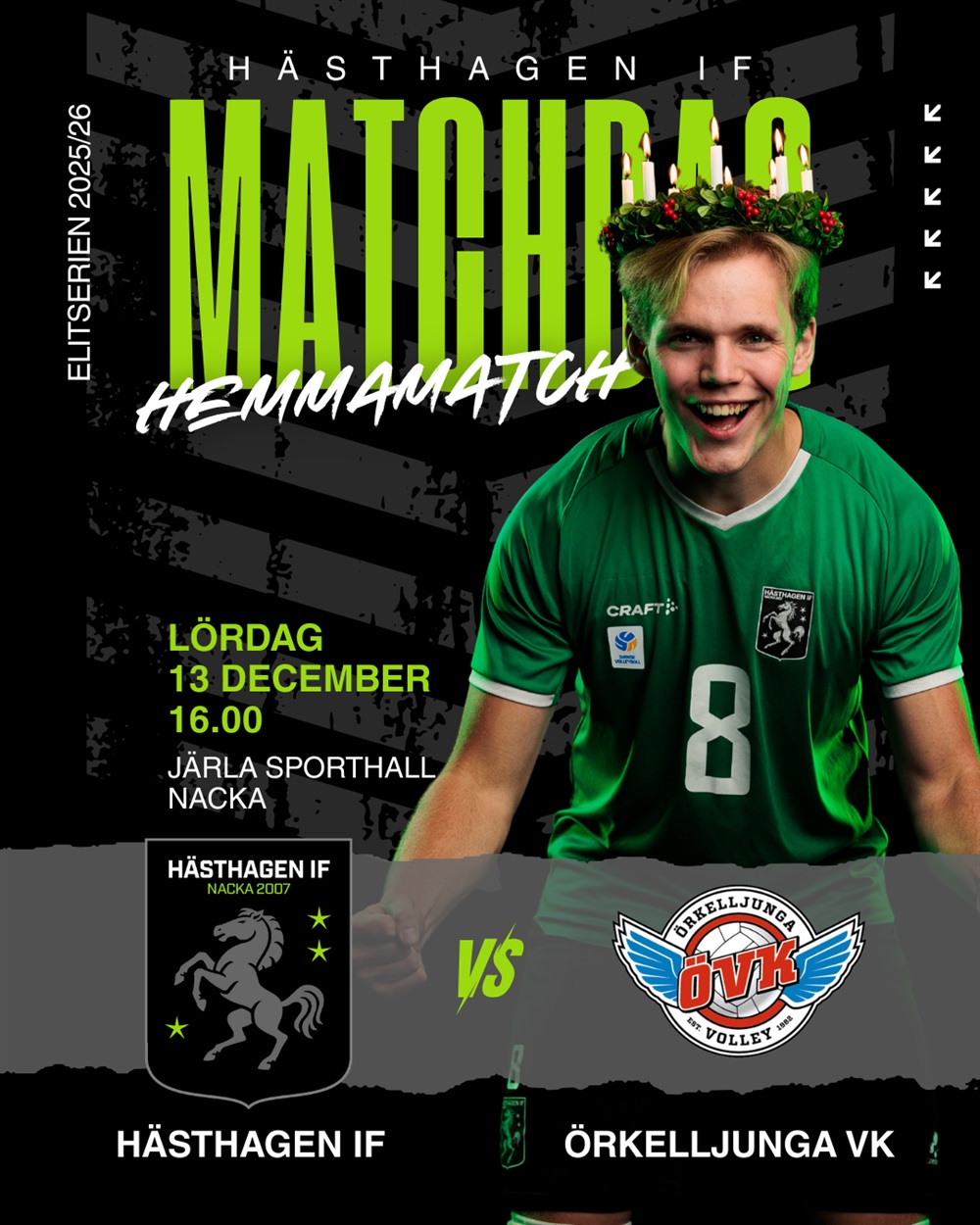 På lördag, 13 december, kombinerar vi elitseriematch hemma i Järla med lussefirande. Vi möter erfarna Örkelljunga, matchstart kl 16.00 och vi har dessutom en pepparkakshustävling.