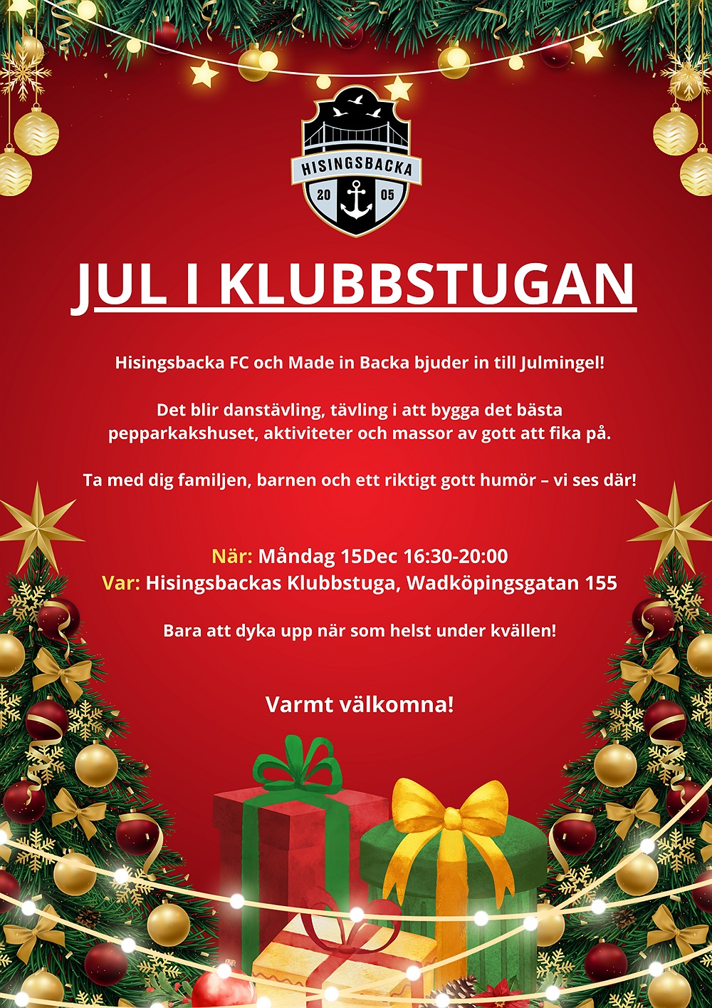 Hisingsbacka FC och Made in Backa bjuder in till Julmingel!