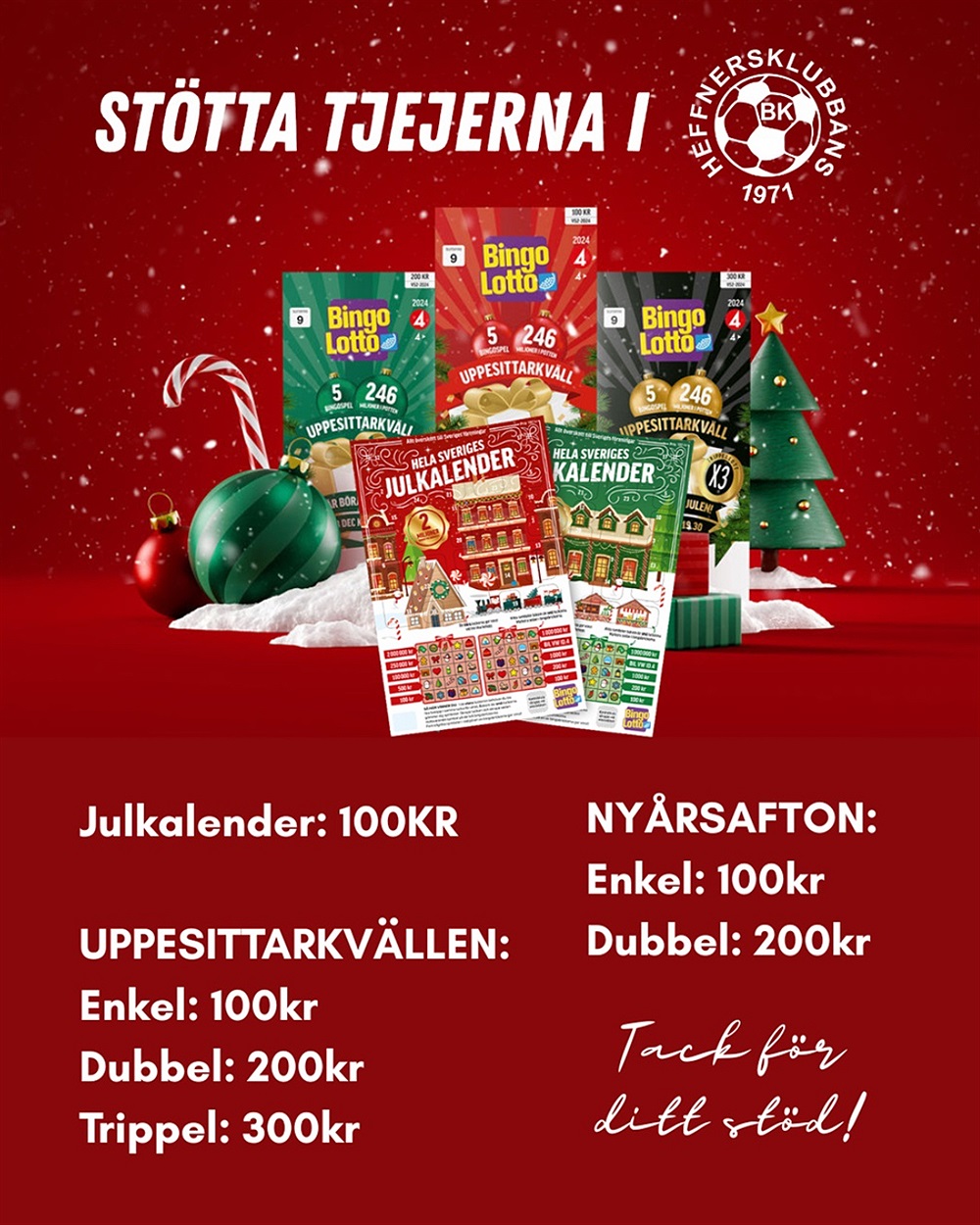 Obligatorisk Bingolotto försäljning inför jul och nyår. Mer info kommer.