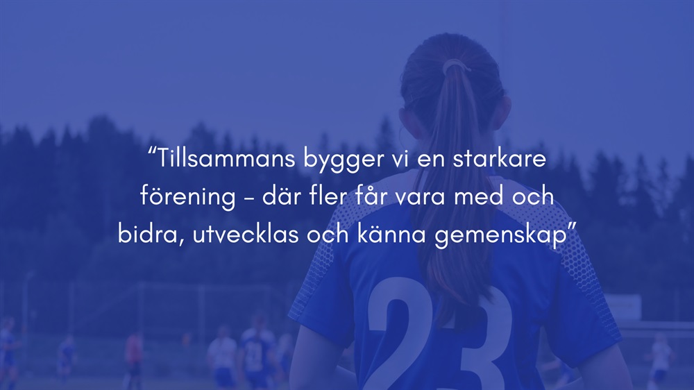 "Tillsammans bygger vi en starkare förening – där fler får vara med och bidra, utvecklas och känna gemenskap."