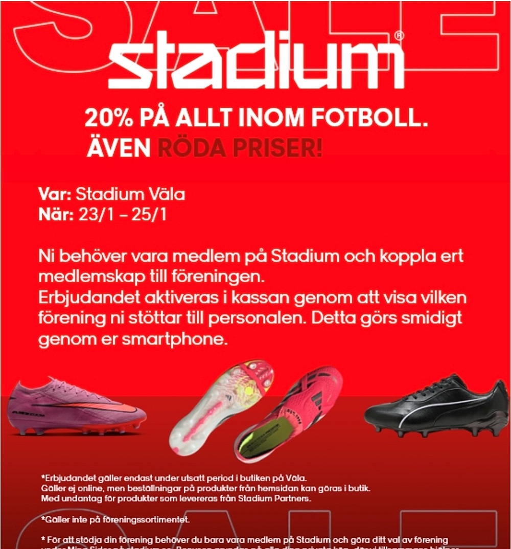 Här kommer ett fint erbjudande från vår samarbetspartner Stadium till våra medlemmar.