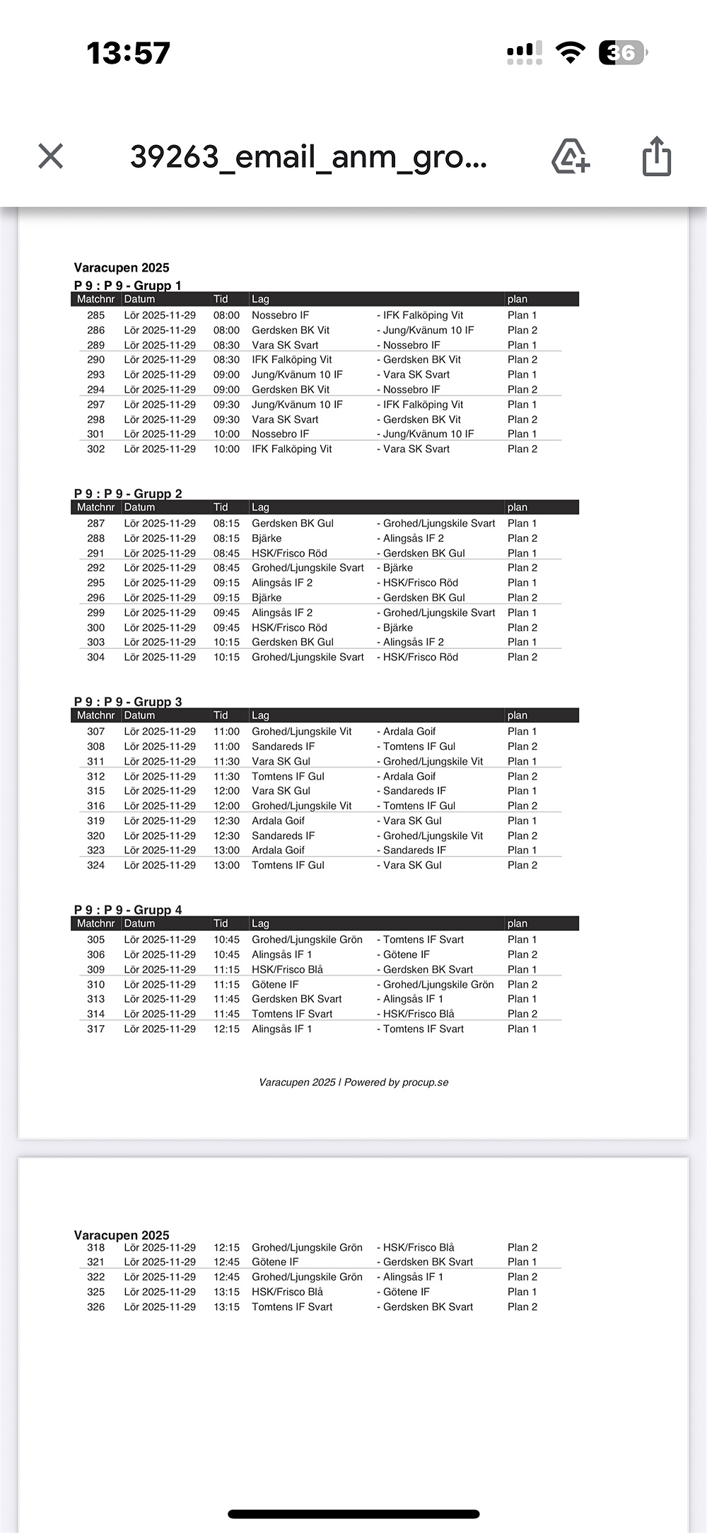 På lördag spelar vi på konstgräs och då kan man ha dubbskor eller vanliga skor. Det spelar ingen roll.