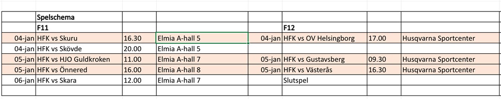 Hej, imorgon gör vi så att vi åker allihopa till Huskvarna center. Dom som inte spelar i F12.matchen hejar på och därefter åker vi till Elmia och vice versa i F11-matchen mot Hjo där dom som inte spelar då hejar på.
